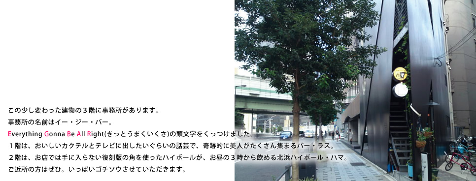 イー・ジー・バー 〒541-0041 大阪府大阪市中央区北浜1丁目3番11号 イー・ジー・バー北浜3F TEL : 06-6231-1411 Email : wordup@apricot.ocn.ne.jp